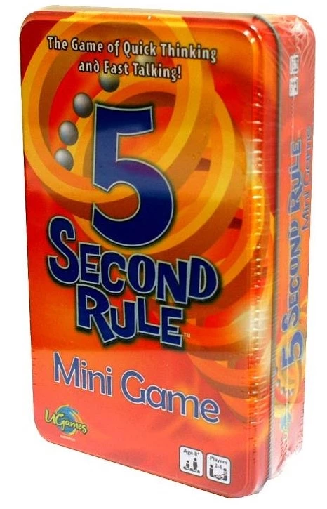 It should be easy to name 3 animals found in a zoo – but can you do it under the pressure of a five second countdown and with the other players staring, waiting for you to make a mistake? Time is not on your side and risk ridiculous answers slipping out as time runs out. 90 question cards, timer, rules, 12 other cards.
