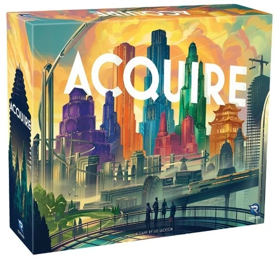 In Acquire, each player strategically invests in businesses, trying to retain a majority of stock. As the businesses grow with tile placements, they also start merging, giving the majority stockholders of the acquired business sizable bonuses, which can then be used to reinvest into other chains. All of the investors in the acquired company can then cash in their stocks for current value or trade them 2-for-1 for shares of the newer, larger business. The game is a race to acquire the greatest wealth.
