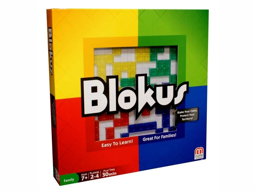 Blokus is the strategy game for the whole family. Players take turns placing pieces on their board, each starting from their corner. Each new piece must touch at least one other piece of the same color, but only at the corners. The goal is to get rid of all your pieces. The game ends when all players are blocked from laying down any more of their pieces