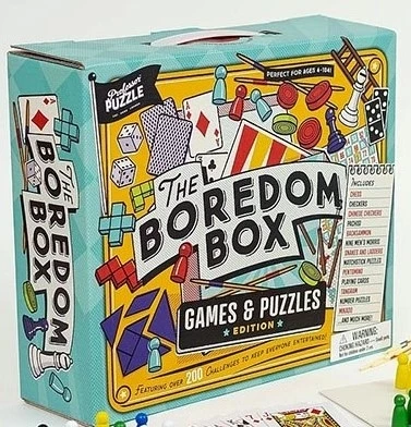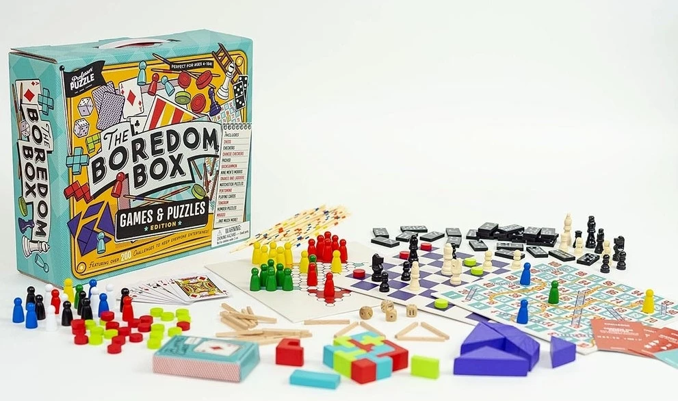 The Boredom Box features over 250 challenges to keep everyone entertained, and includes everything you need for family games night – Chess, Checkers, Backgammon, Mikado, Pachisi, Nine Mens Morris, Snakes & Ladders, Matchstick Puzzles, Playing Cards, Tangram Puzzles, Number Puzzles, Trivia Questions, Lateral Thinking Puzzles and much more! Develop creative thinking, problem solving skills & classic board game abilities – the perfect addition to games night / gift for board games & brain teaser enthusiasts.