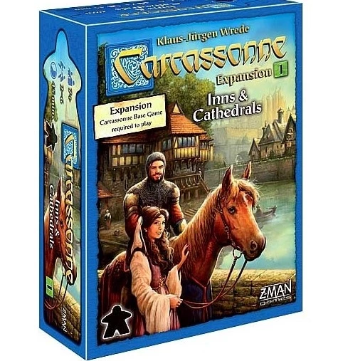 Carcassonne Expansion #1, Inns and Cathedrals. With 18 new land tiles, 8 meeples and 1 abbot for a 6th plyer, 6 large meeples, and 6 points tile.