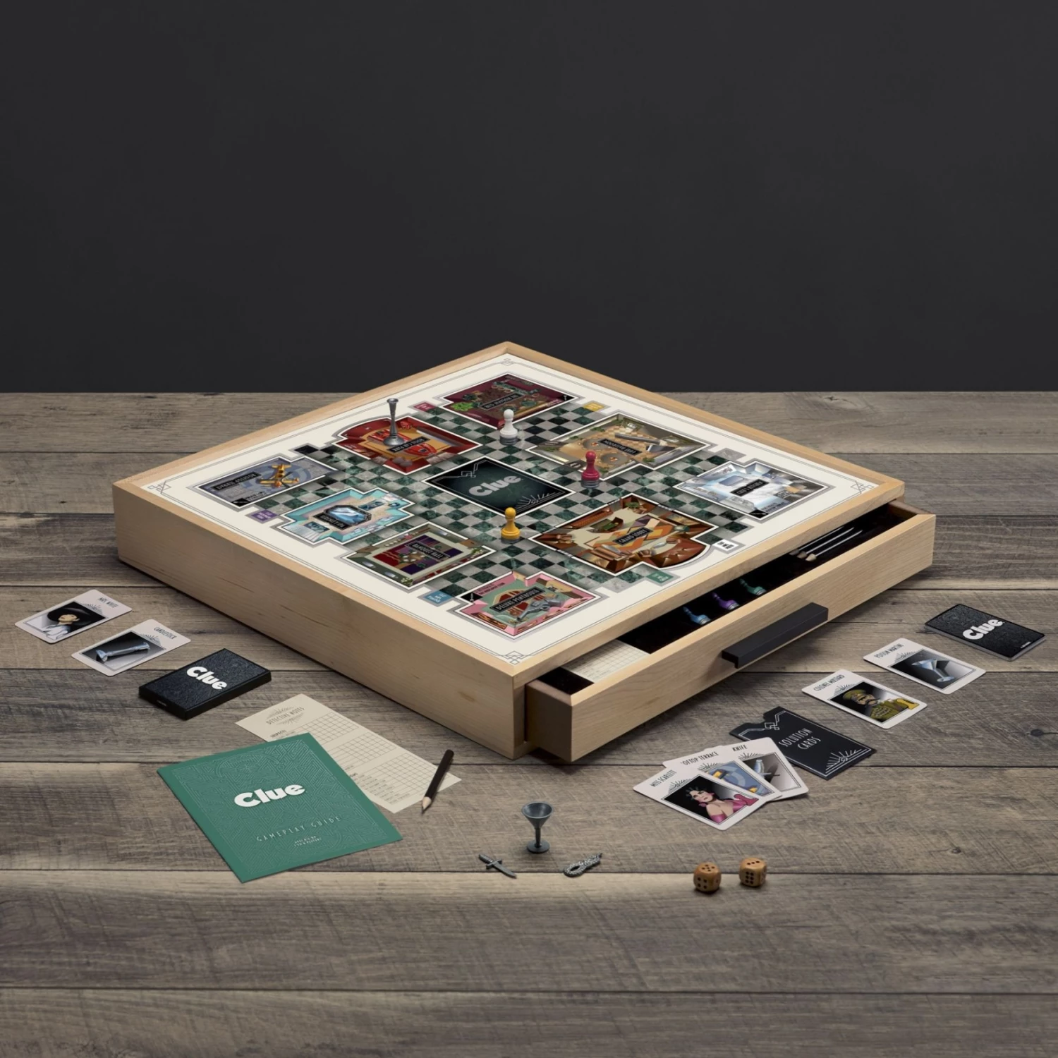 This Clue Luxe Edition combines beauty and elegance with a twist on the classic detective game. Swing into the roaring 20s while you unlock the secrets of Clue at the Roaring Ritzy Hotel! With lush Art Deco illustrations, this gorgeous edition features a solid maple wood cabinet with an integrated storage drawer and die-cast metal drawer pull. The striking foil-stamped Clue game board is built into the cabinet. Richness abounds in this 20s-themed set with premium components, including wood and die-cast metal tokens, metal weapons, foil-stamped solution envelope, and a boxed set of illustrated Clue cards.