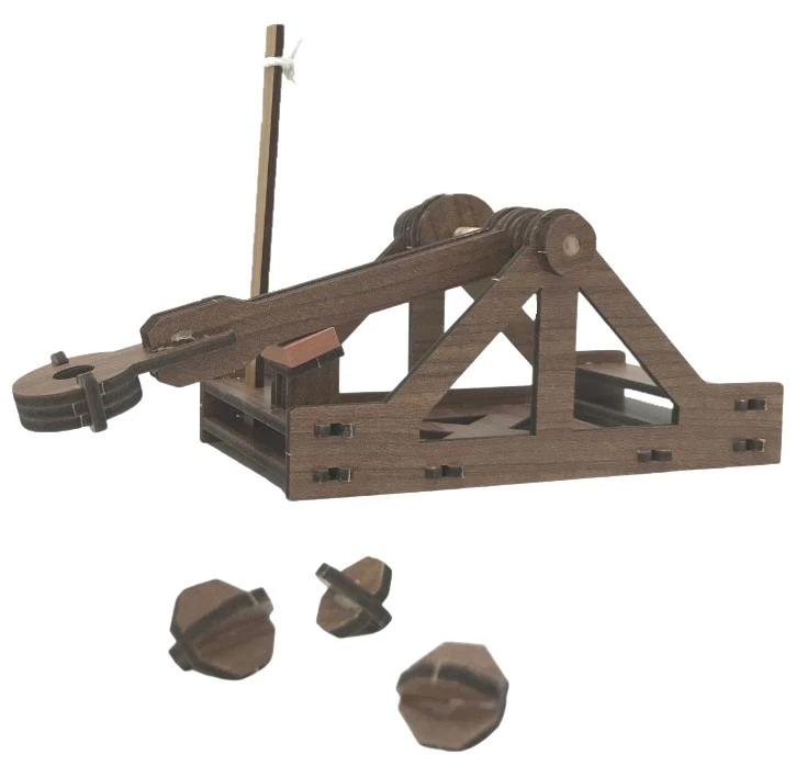 The da Vinci Catapult miniature is a working re-creation of his 15th Century design. Leonardo designed a wide range of catapults, some functional, some not so much.