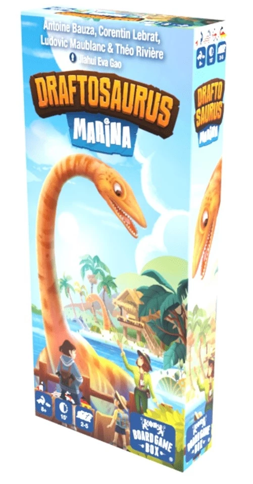 This expansion for Draftosaurus adds a new double-sided board that each player can combine with their existing park to add a new river zone. Plesiosaurus are the only dino-meeples that can be placed in this part of the river, earning points at the end of the game. To move your plesiosaurus further down the river and earn more points, you must place specific other species in your park to unlock the dams one by one