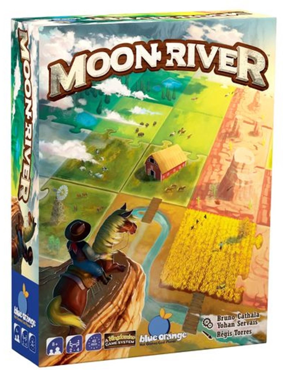 Instead of building your landscape around a central castle, you start from the river and expand away from it. Also, the crowns (i.e., the victory point multiplier) from Kingdomino are replaced by cow meeples, with players being able to use cowboys to move them.