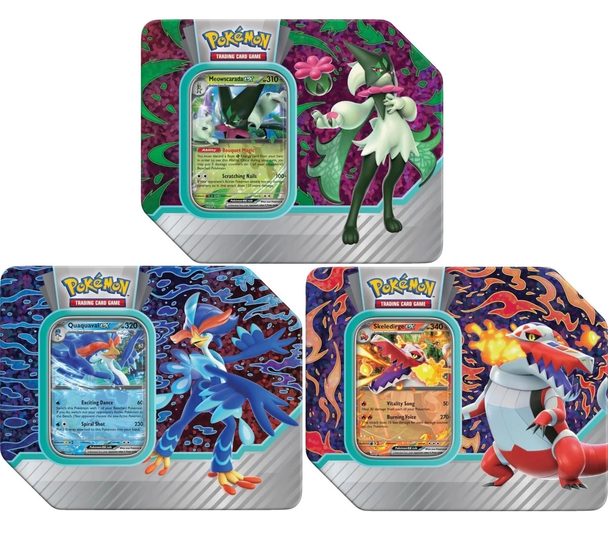 - 1 foil Promo card featuring Meowscarada ex, Skeledirge ex, or Quaquaval ex
