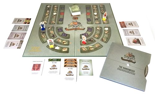 The board represents the layout of the House of Representatives and role-play is used to involve players in the ‘game’ of politics. It is great fun to play and educational as well. It has over 1500 questions – mostly multiple choice. Political knowledge is rewarded, but so are tactics, sneakiness and alliances. And there are a number of different wild cards that can be used to disrupt know-alls – by sending them to the back benches, blocking a proposed bill, and WORSE.