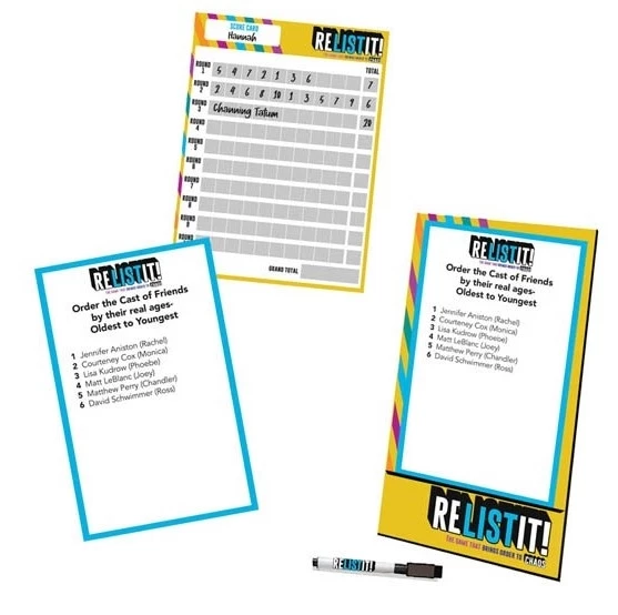 Life is made of lists, but these lists are all jumbled up! In Relist It, players must work to put all the topics on a card back into the right order – and they have to do it under the pressure of a timer! But that’s not all – in addition to relisting Topic Cards, players must also unscramble words, or create anagrams. It’s word jumbling, list making chaos that’s fun for the whole family!