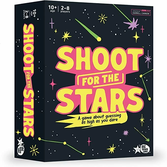Shoot for the Stars is a party game where all the answers are numbers. You don’t need to know the exact answer to win points — you just need to get close without going over.