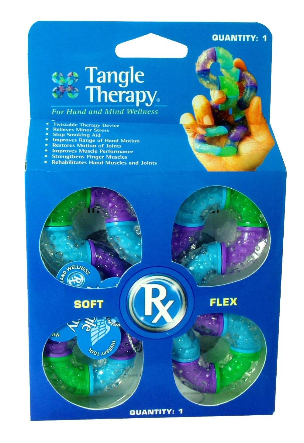 This twistable therapy device is an ergonomic approach to hand therapy, minor stress relief, smoking cessation, building fine motor skills, and much more. Soft, texturized rubber bumps on this Tangle provide a one-of-a-kind sensory and tactile experience in your hands. The motion is calming and fun!