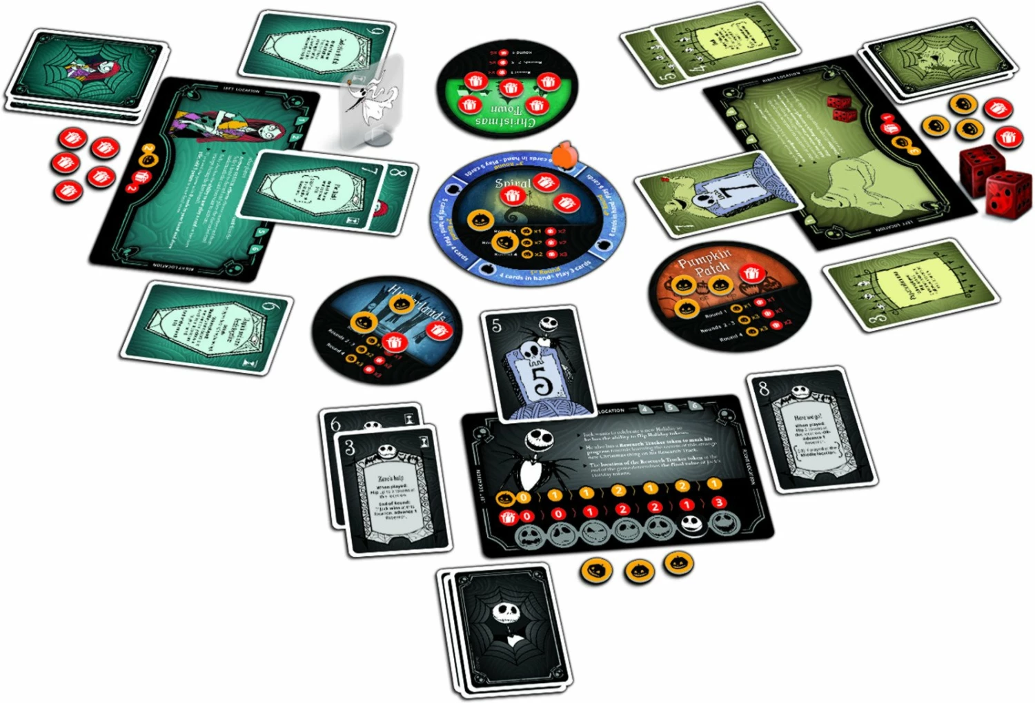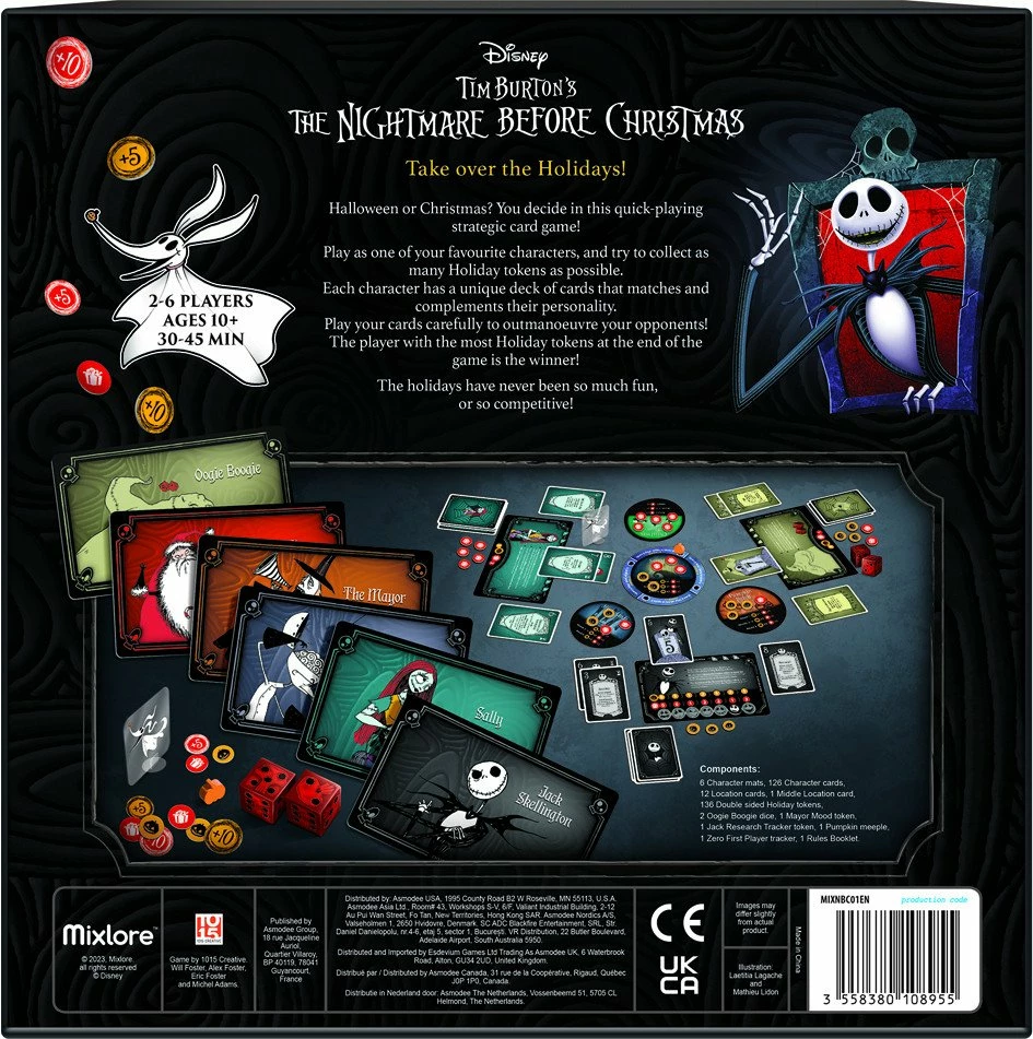 A quick-playing tactical card game where you play one of the iconic movie characters, Jack, Sally, Santa Claus, Oogie Boogie, Dr Finkelstein or The Mayor and, try to make their holiday wins.