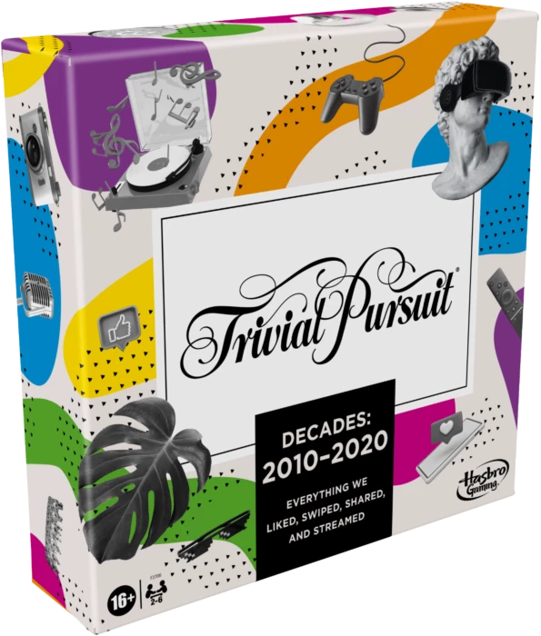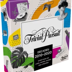 The Trivial Pursuit Decades 2010 to 2020 board game features pop culture trivia questions from 6 categories, including Playlist, Bingeworthy, Culture, News Alert, Break the Internet, and Game On. Gather friends and family members for a fun night of trivia. Leave out the gameboard and play using cards only!